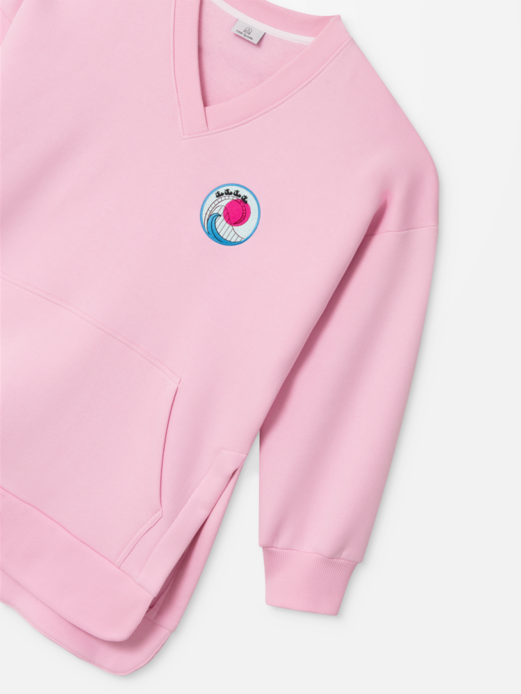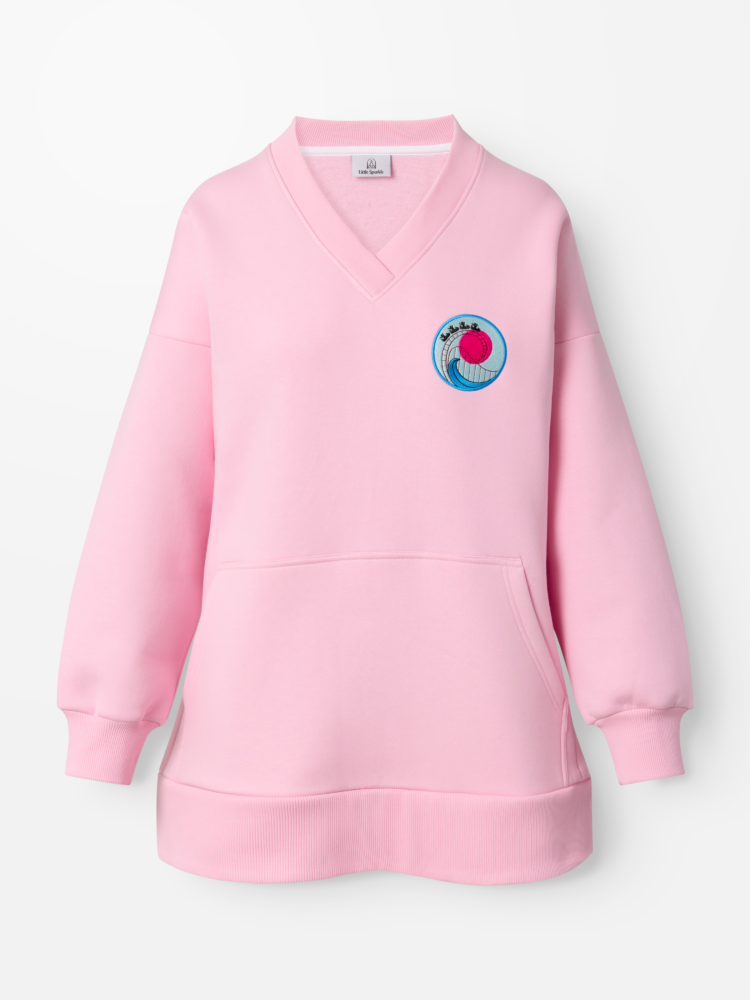 Na piersi znajdziesz wyjątkowy haft – wesoła rodzinka w wagoniku kolejki górskiej, w tle zachód słońca. Na plecach – mocny przekaz: „Motherhood is like a rollercoaster”. Nie tylko design, ale i funkcjonalność: bluza ma wygodny dekolt w serek, kieszeń kangurkę oraz wycięcia po bokach, które sprawiają, że noszenie jej z brzuszkiem to czysta przyjemność.
